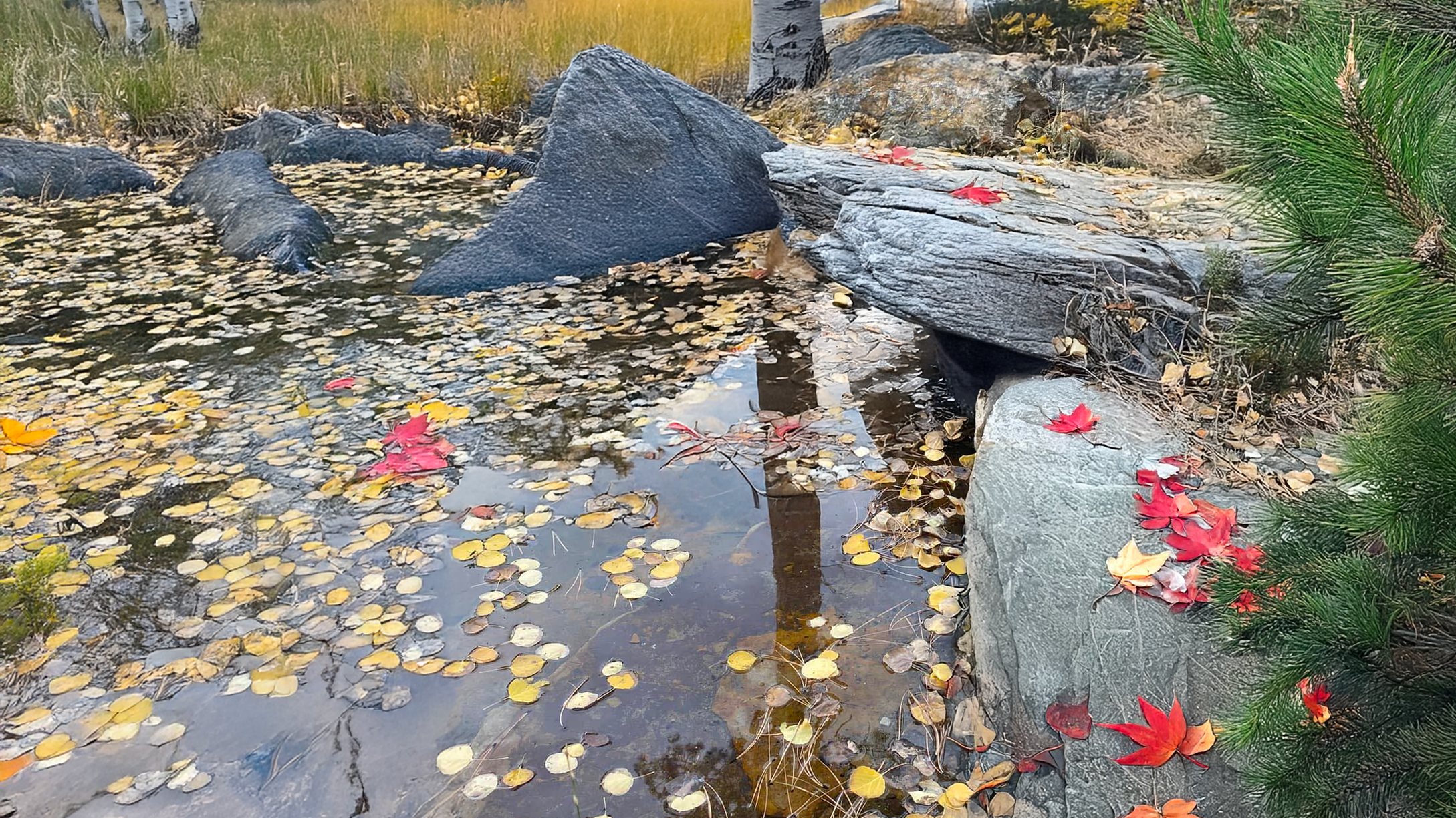 Once a rugged mountain drainage way, this 30-acre site now thrives as an enchanting ecosystem. Three ponds mirror the towering peaks, while meandering streams cascade into gentle waterfalls. Glide in a kayak, or simply play by the water’s edge. Natural stone steps guide you to deeper parts of the lower pond for a swim. Large boulders and driftwood create inviting nooks for the enjoyment of the fire pit, calm contemplation or entertaining with adults, children and pets. More steps lead up past the deer-resistant native plantings to a secret area over the ridge: the uppermost and the largest of all the ponds, which serves as an ice-hockey field in winter. Welcome to a place where adventure meets serenity and—a haven for both wildlife and nature.